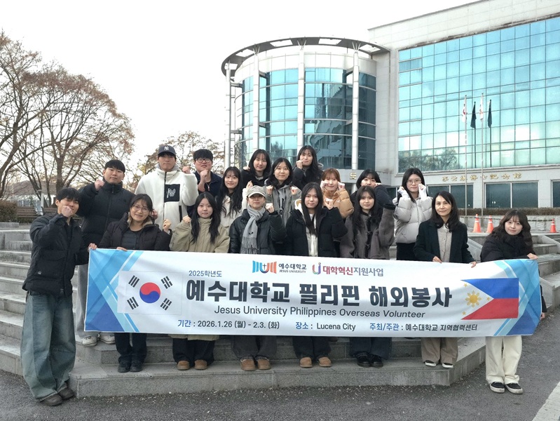 예수대학교(총장 김찬기)는 1월 26일부터 2월 3일까지 7박 9일간 필리핀 루세나시티에서 해외봉사활동을 진행한다. 이번 봉사활동은 예수대학교의 글로벌 나눔 정신을 실천하는 해외 프로그램의 일환으로 마련됐다.