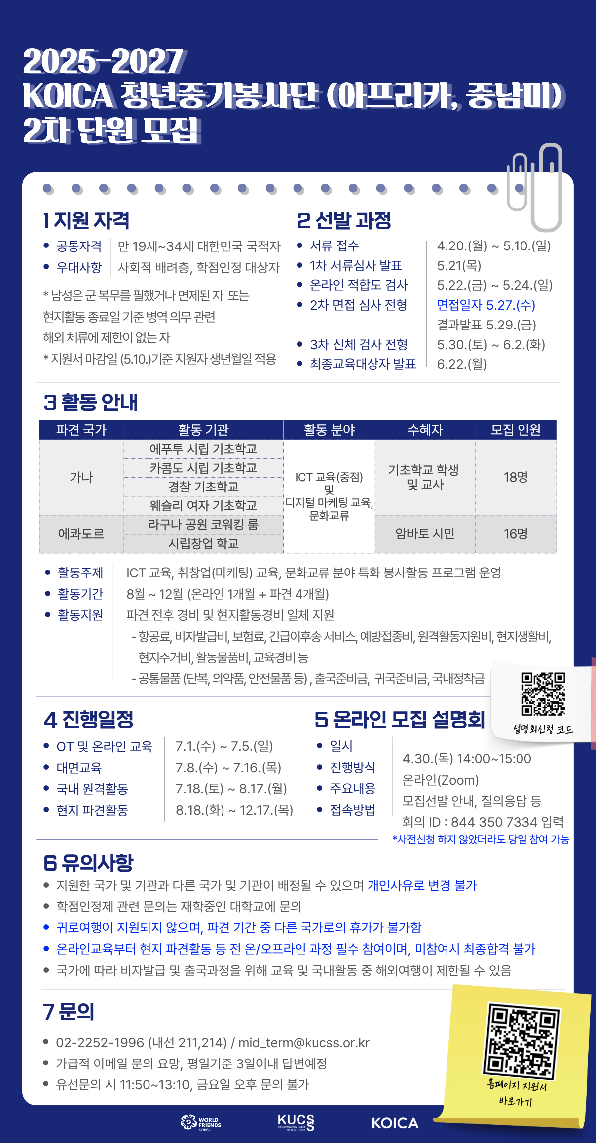 [대사협] 2025-2027 KOICA-청년중기봉사단 (아프리카중남미) 2차 파견 단원 모집 안내