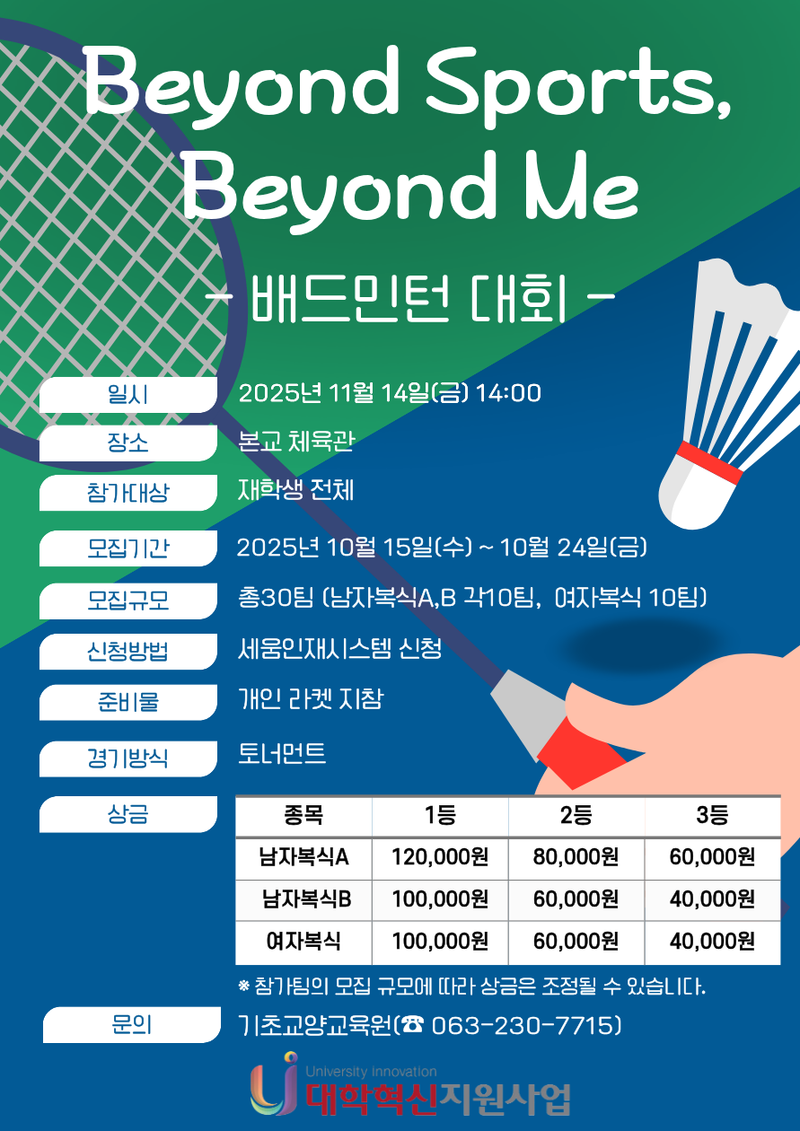 교과 연계 비교과 「Beyond Sports, Beyond Me」- 배드민턴 대회 참가 신청 안내