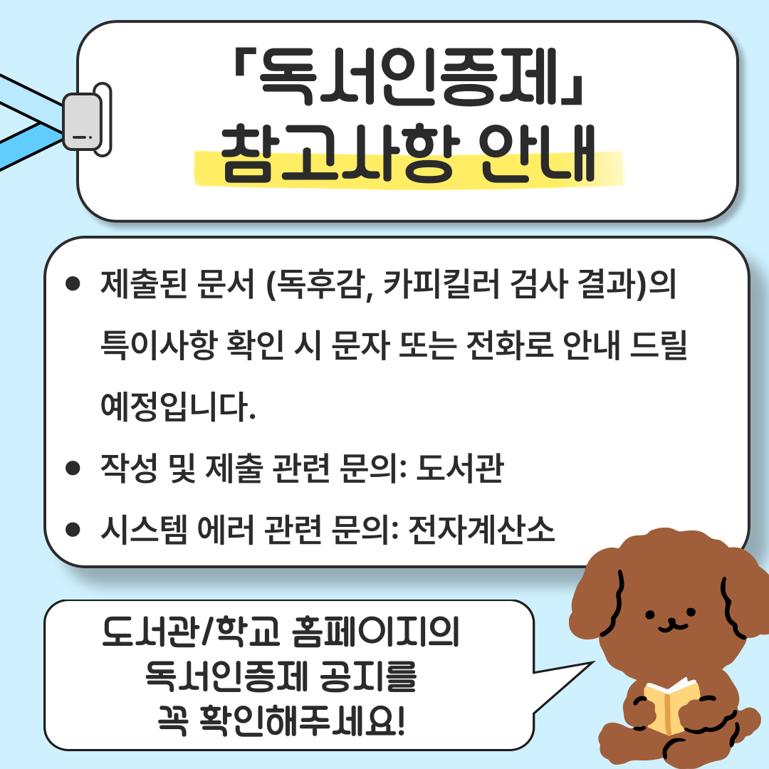 이번 시간에는 독서인증제가 무엇인지에 대해 알아보고 제출 기간, 절차, 주의사항에 대해 안내 드립니다.